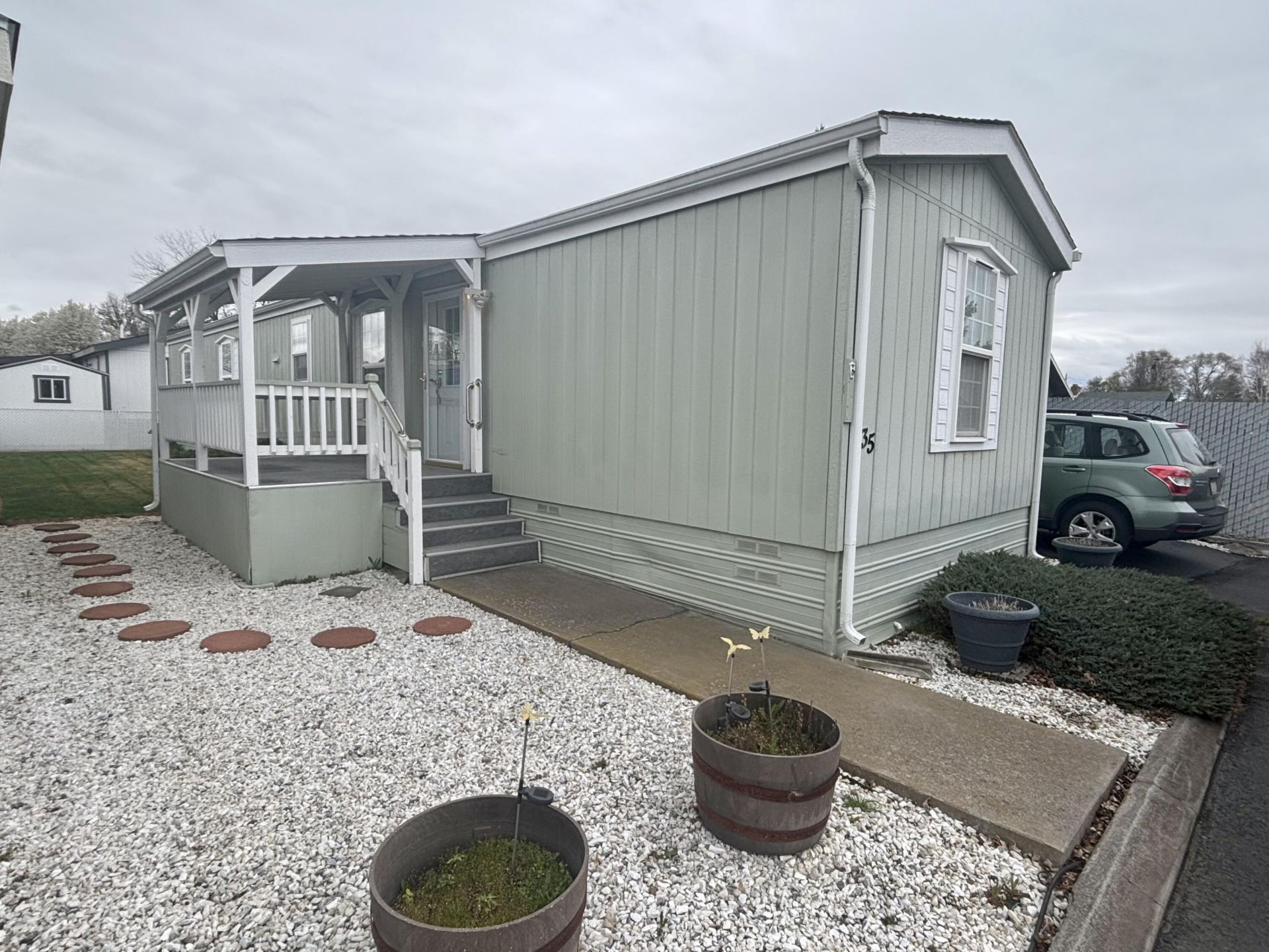 This charming manufactured home features 2 bedrooms and 2 bathrooms, located in the desirable Alpine Meadows 55+ community. The home offers a spacious primary bedroom and ceiling fan in living room for added comfort. Enjoy a fenced yard, attached carport, and additional storage space. The property is nicely landscaped, creating a welcoming outdoor setting and sprinklers in front and back. The kitchen comes fully equipped with all appliances, including a washer and dryer for added convenience. Centrally located in Klamath Falls, this home provides easy access to shopping, dining, medical facilities, and more. Community amenities include a clubhouse and RV parking for short-term guests.